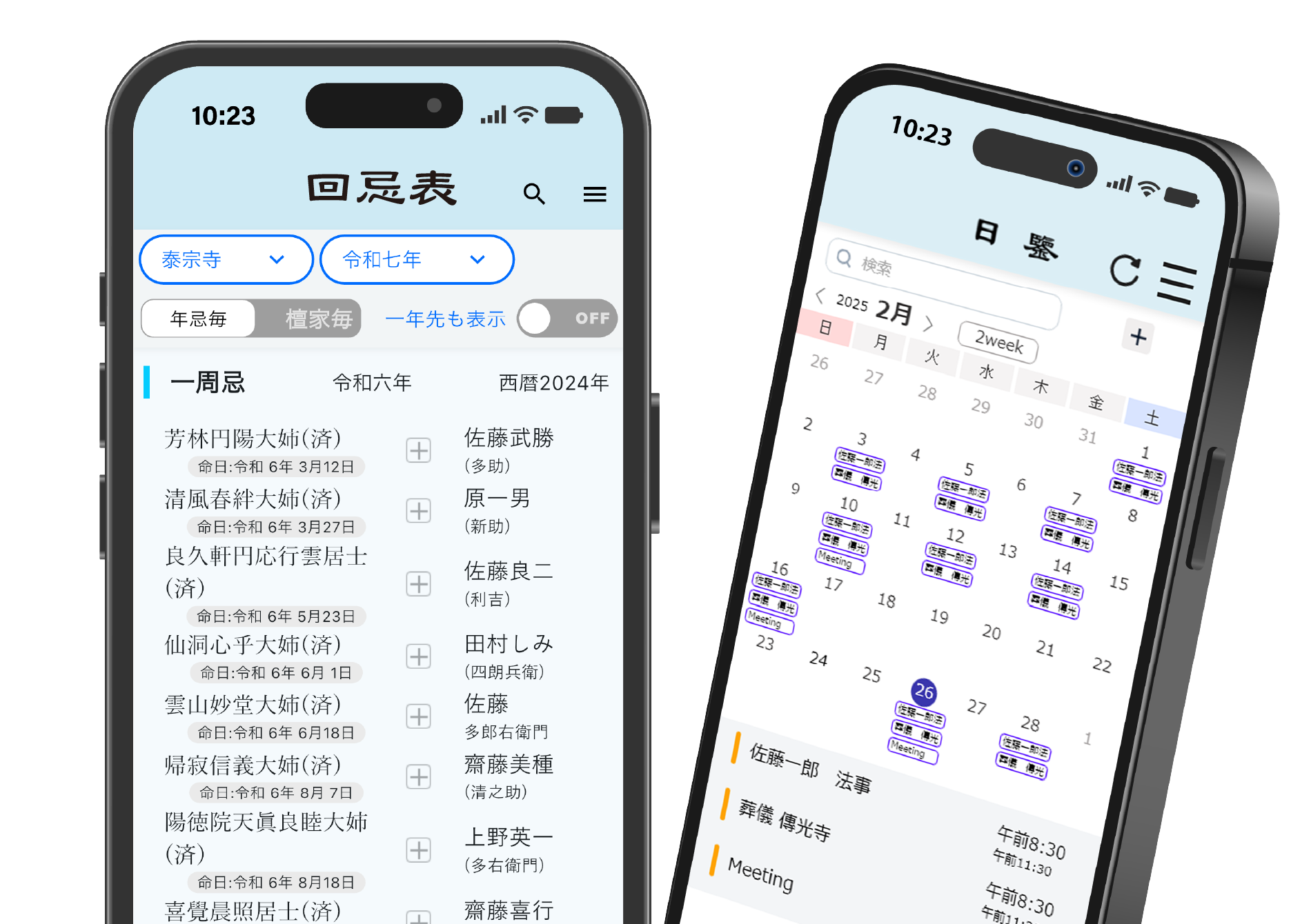 葬儀・法事などの檀務スケジュールをiOS標準カレンダーとGoogleカレンダー、どちらにも同期可能です。複数寺院管理